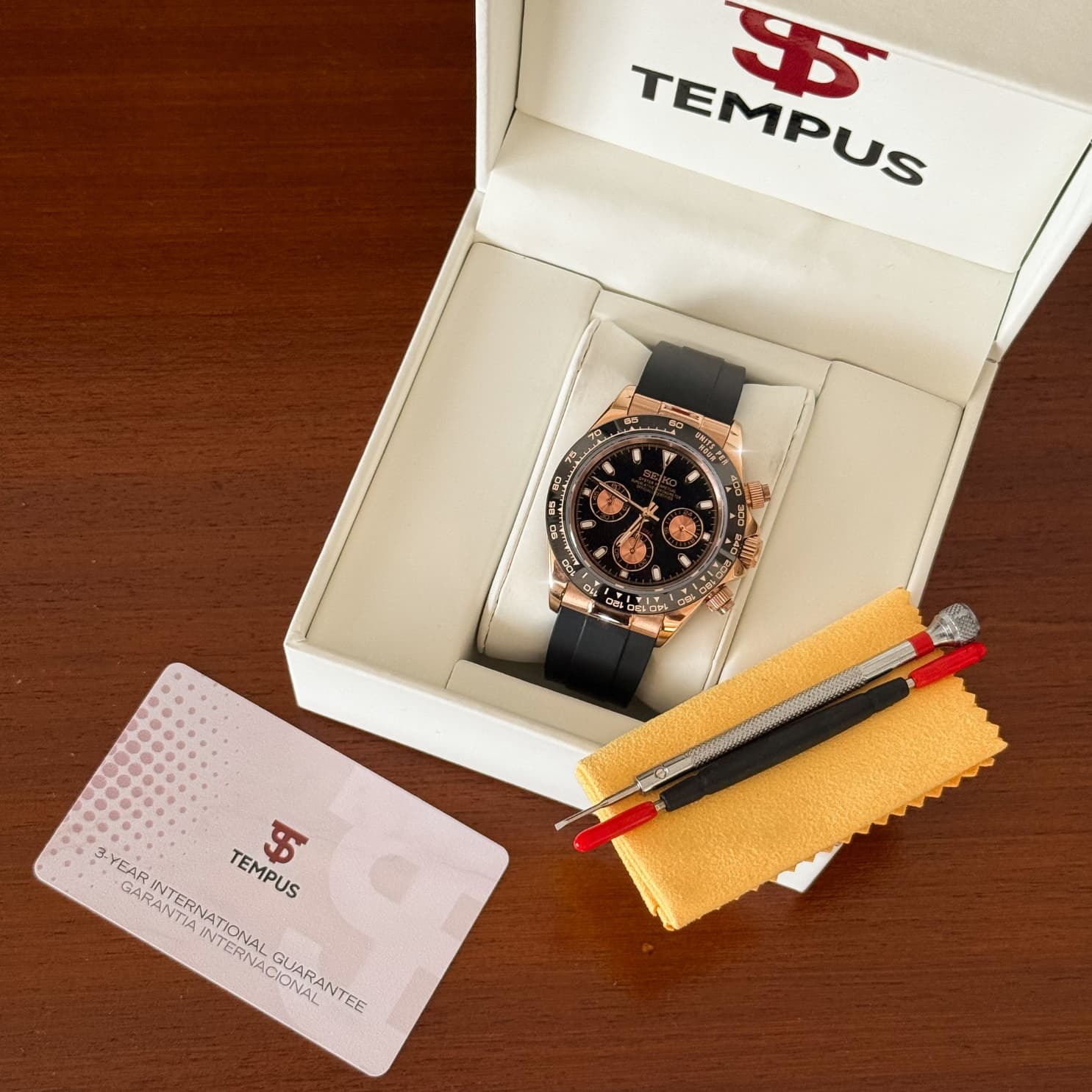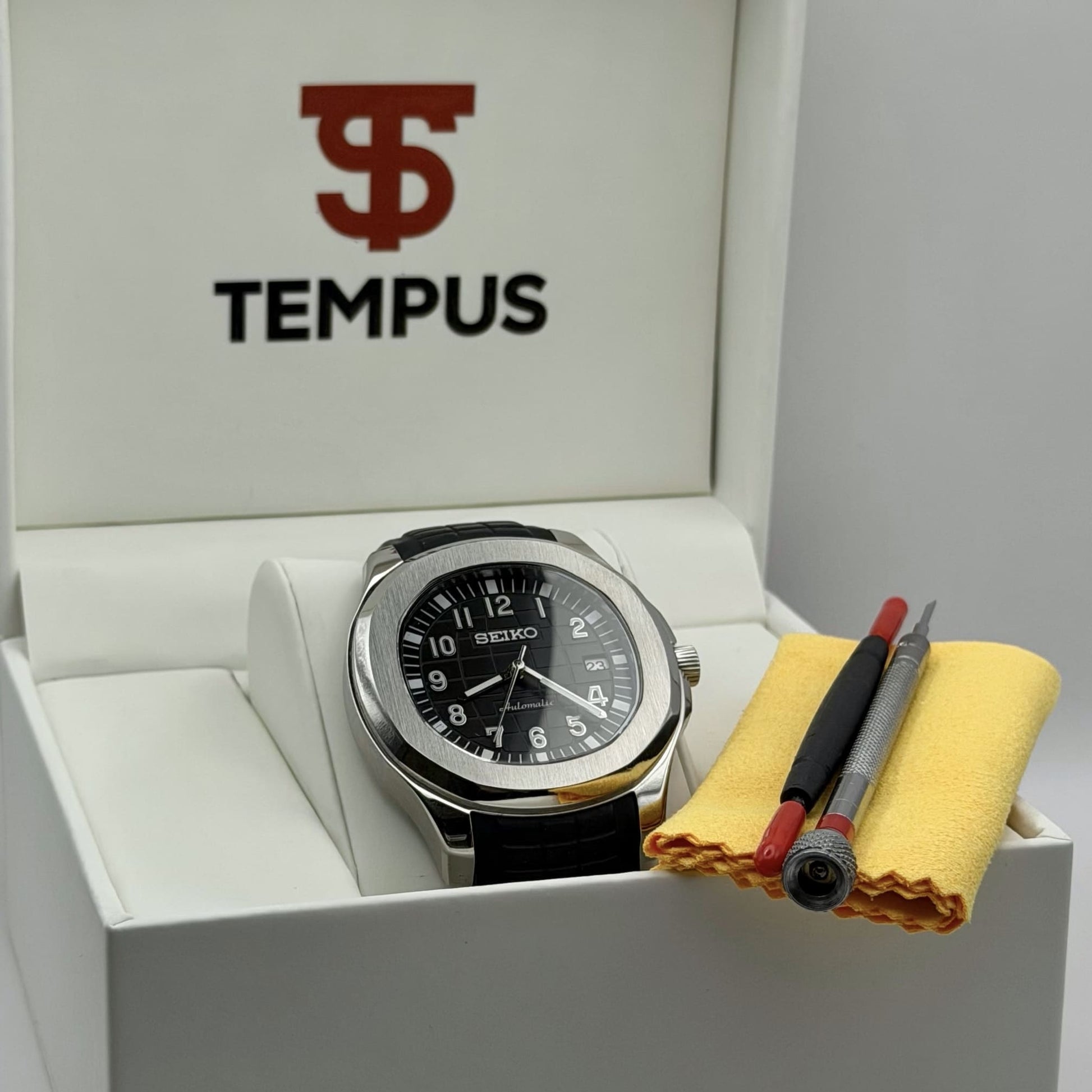 At Tempus, we go beyond watches. Each timepiece comes in a premium custom box with a free adjustment kit for the perfect fit, reflecting our commitment to quality and detail.