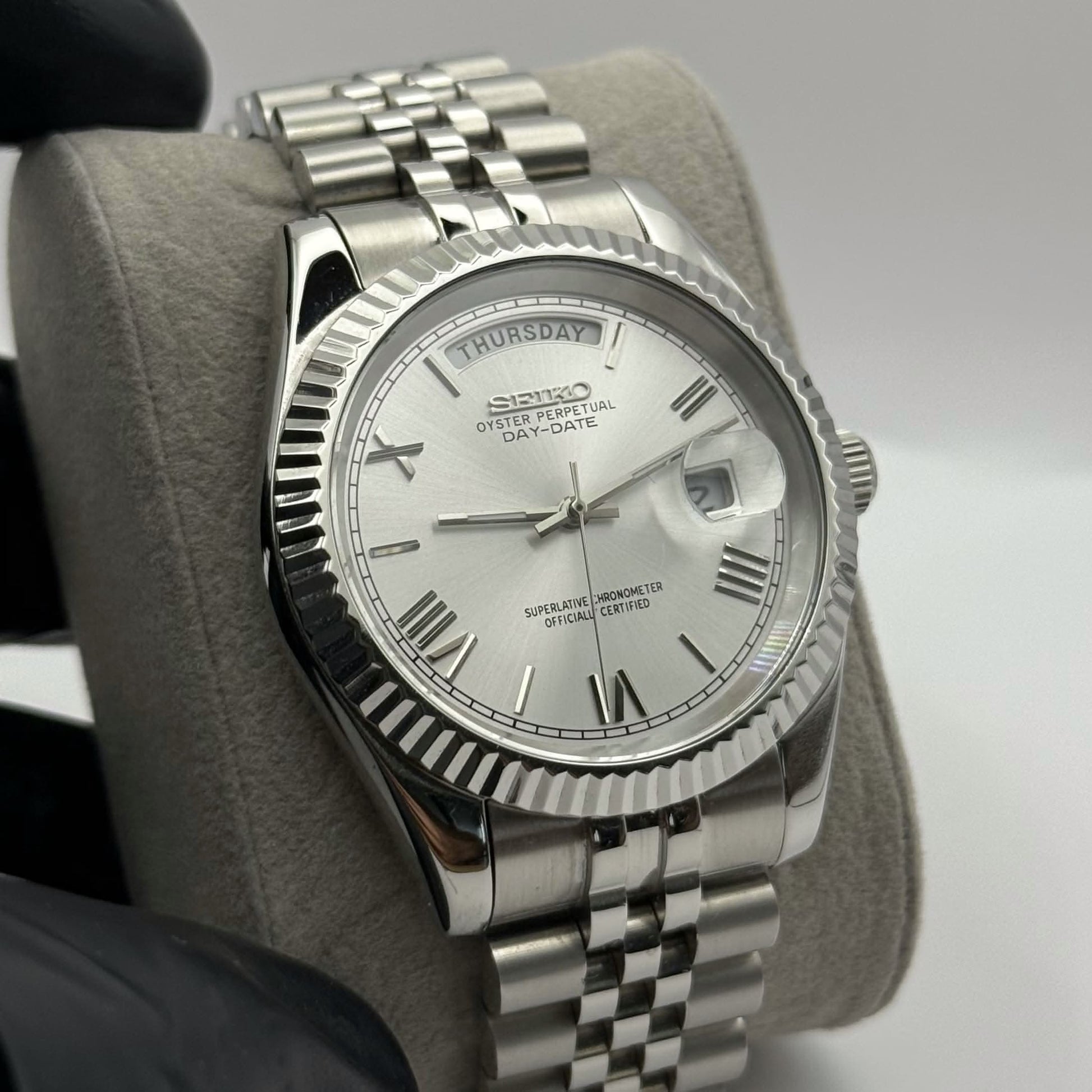 Inspired by the classic Day-Date design, we present the Seiko Mod Day-Date. A 40 mm high-end quality watch combining the perfect alliance between excellence and accessibility.