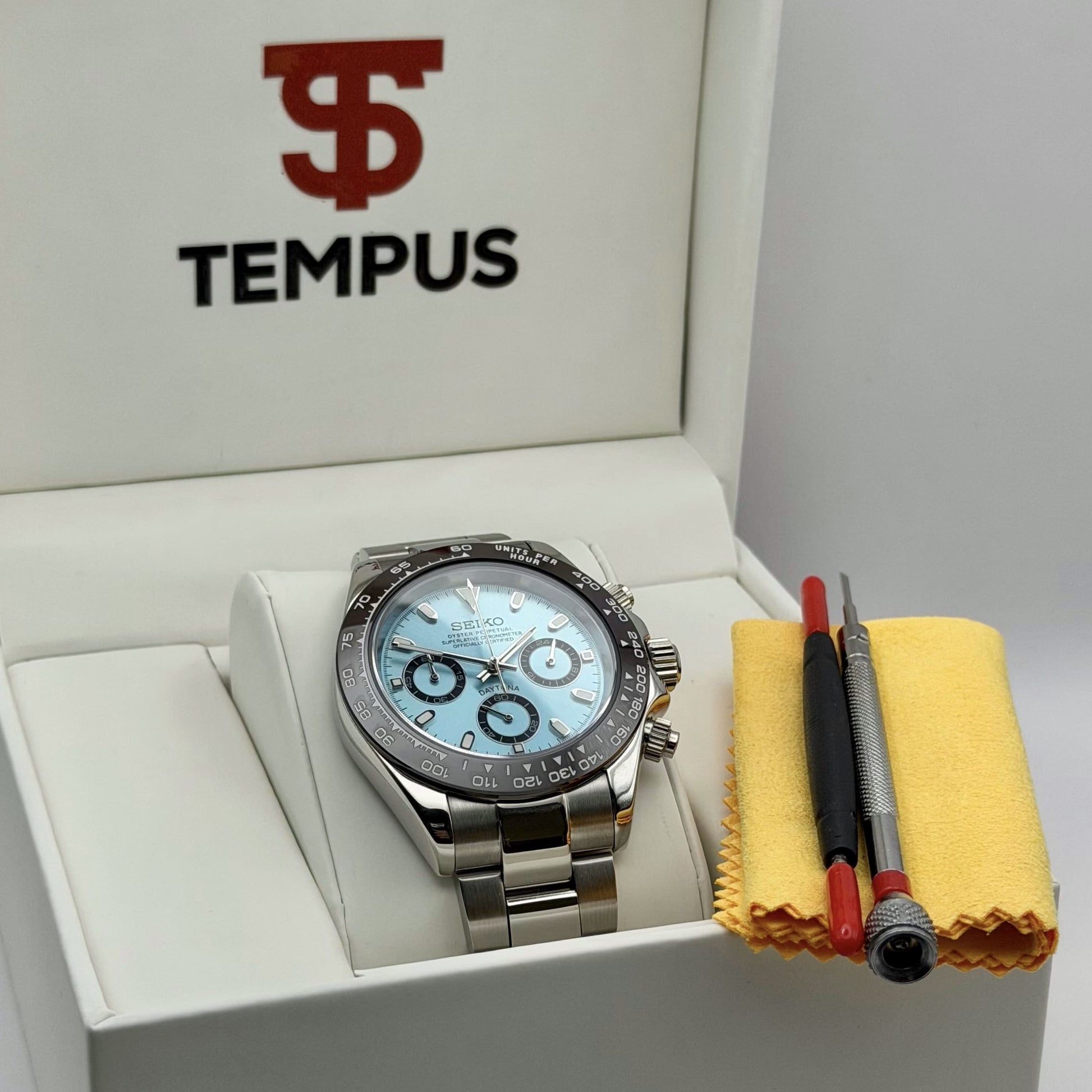 Inspired by the iconic Daytona design, and featuring the prestigious Seiko VK63 hybrid movement, we present the Seiko Mod Daytona. A 40 mm high-end quality watch combining the perfect alliance between excellence and accessibility.
